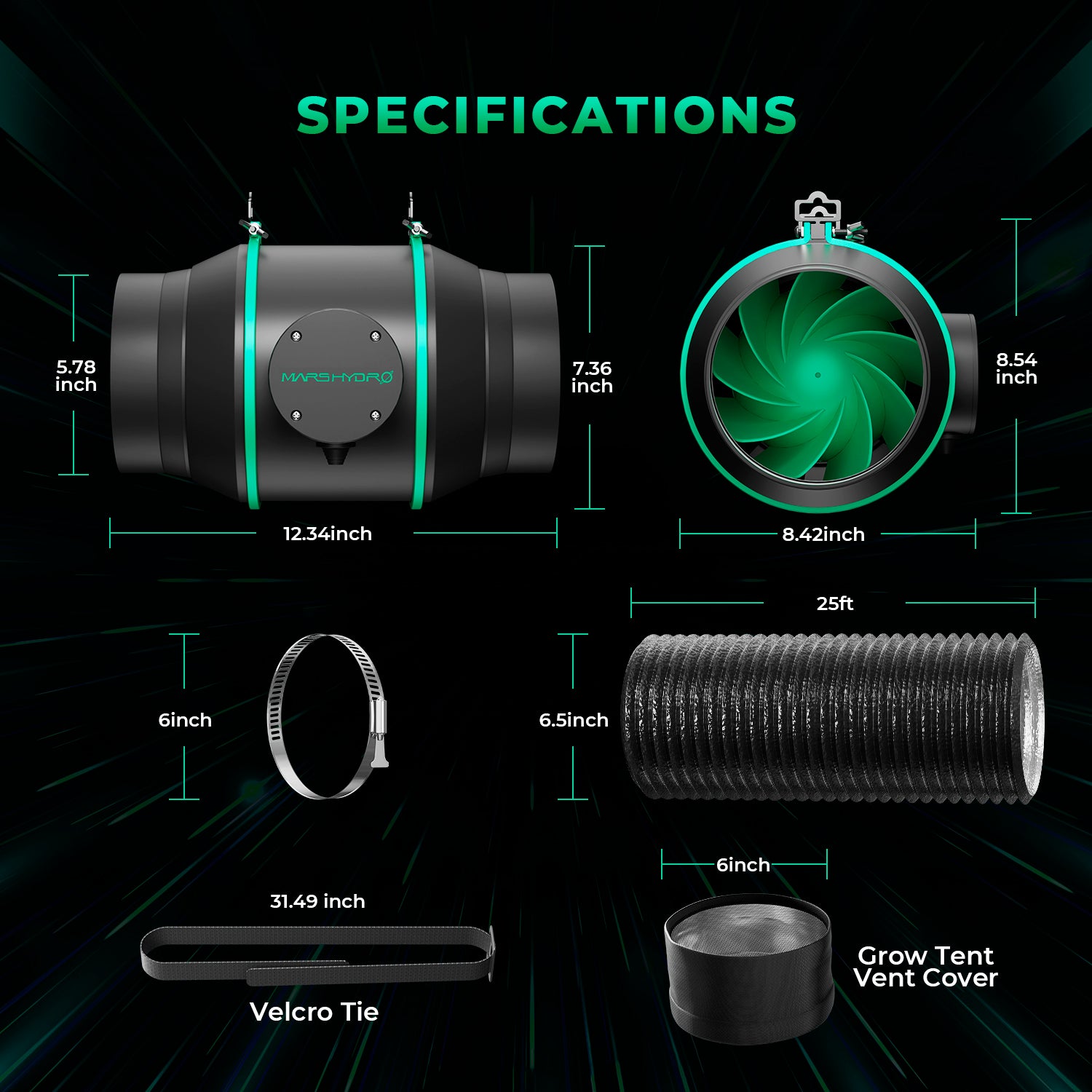 • Mars Hydro Kompletní sady ventilátorů iFresh o průměru 6 palců s doplňkovým balíčkem Marspro