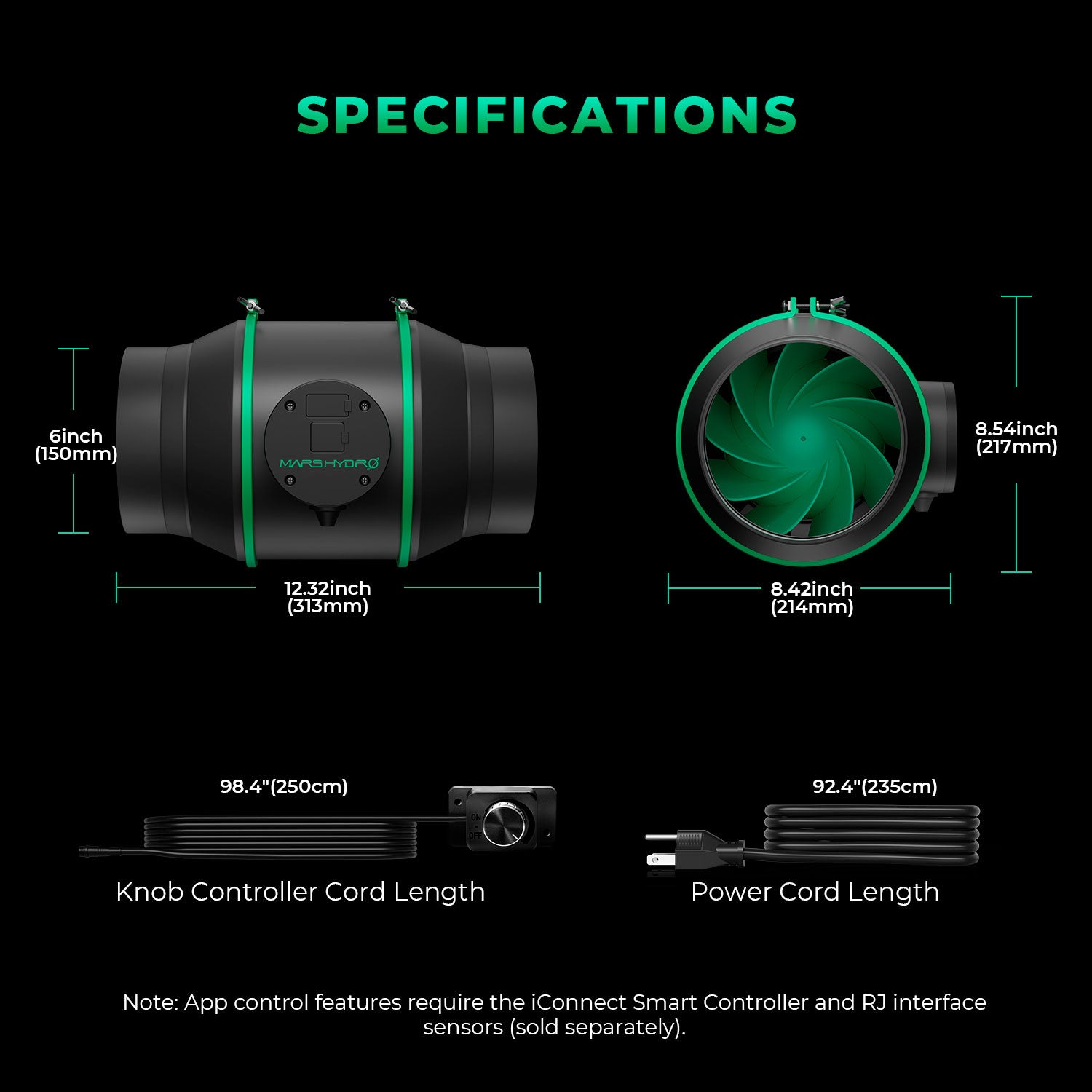 Jedno Mars Hydro 6palcový inline ventilátor iFresh je vybaven EC motorem řízeným PWM, který zajišťuje, že pěstitelé dosahují účinné a přesné regulace rychlosti ventilátoru, což v konečném důsledku optimalizuje výkon. Tento motor nabízí delší životnost ve srovnání se střídavými motory, zvyšuje bezpečnost a pracuje s pozoruhodně nízkou hladinou hluku.