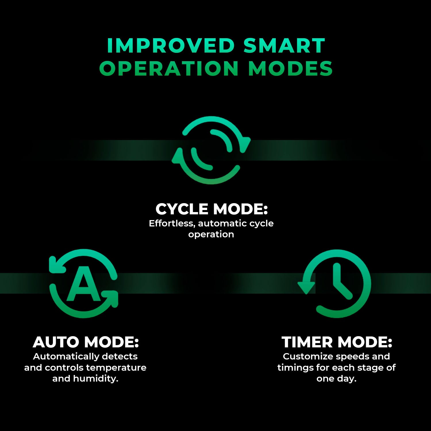 Inline ventilátor iFresh nabízí inteligentní možnosti regulace, které umožňují pěstitelům definovat „bezpečný rozsah“ teploty a vlhkosti. V reakci na podmínky spadající mimo tento rozsah ventilátor automaticky pracuje na maximální rychlost a zajišťuje trvale optimální klima v pěstební místnosti.